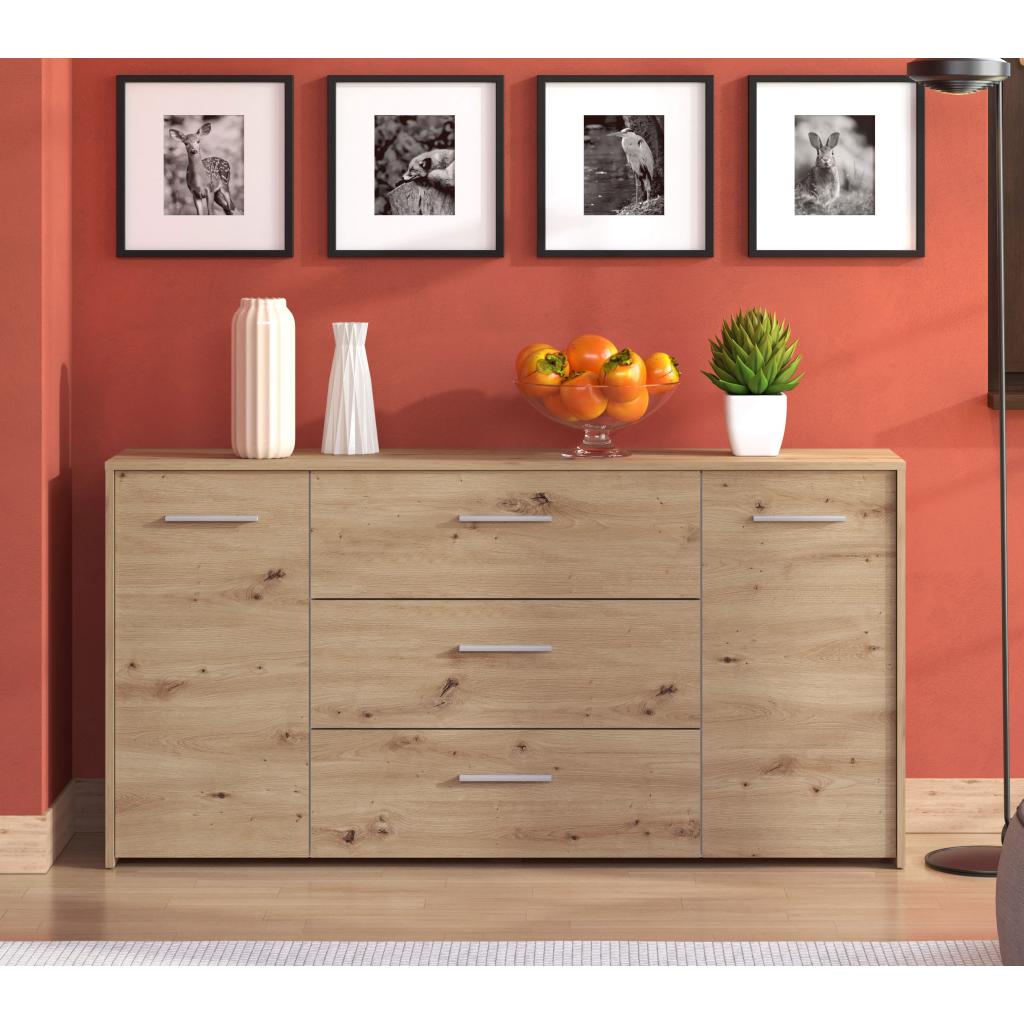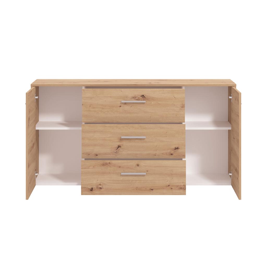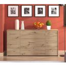Rebajas Oferta Novedad Aparador Ref: 212500000178 139,99 € Sencillo aparador en roble con 3 cajones y 2 puertasComposición: Tablero de partículas, tablero de fibras, lámina de papel, borde de plástico. Disponibilidad: Color Roble Tamaño 158x80.5x33 cm Ancho x Alto x Fondo Cantidad