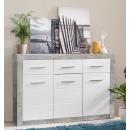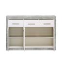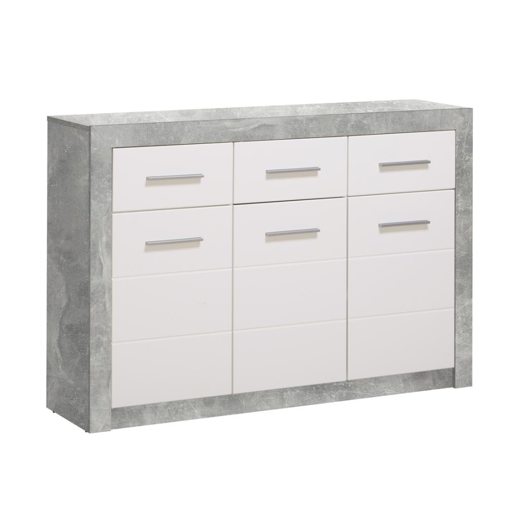 Aparador con 3 puertas y 3 cajones en blanco brillo y gris cemento