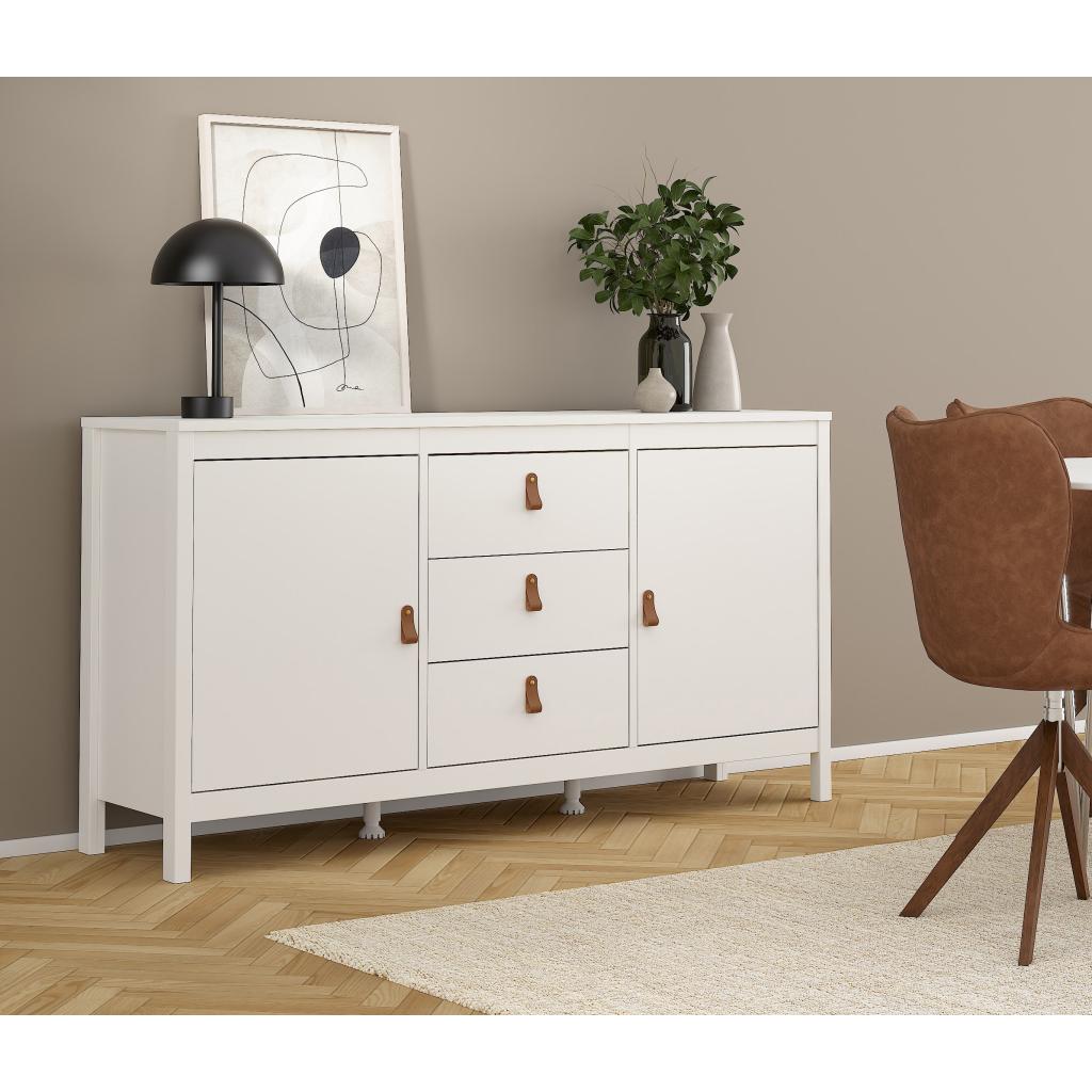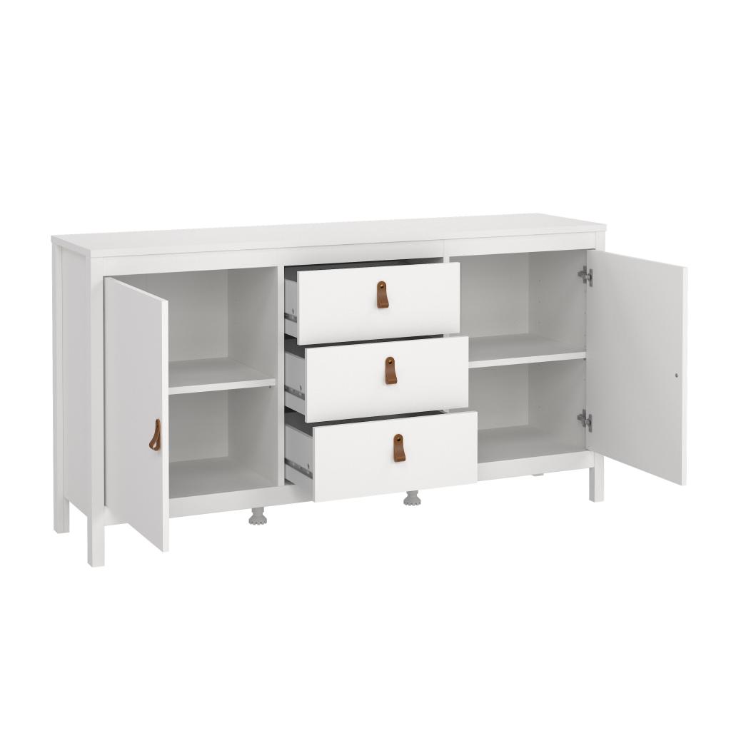 Rebajas Oferta Novedad Aparador en blanco Ref: 139900000183 229,99 € Sencillo aparador en blanco, dos puertas y tres cajones.Composición: Tablero de partículas, tablero de fibras, lámina de papel, borde de plástico. Disponibilidad: Color Blanco Tamaño 151.4x79.7x38.4 Ancho x Alto x Fondo Cantidad