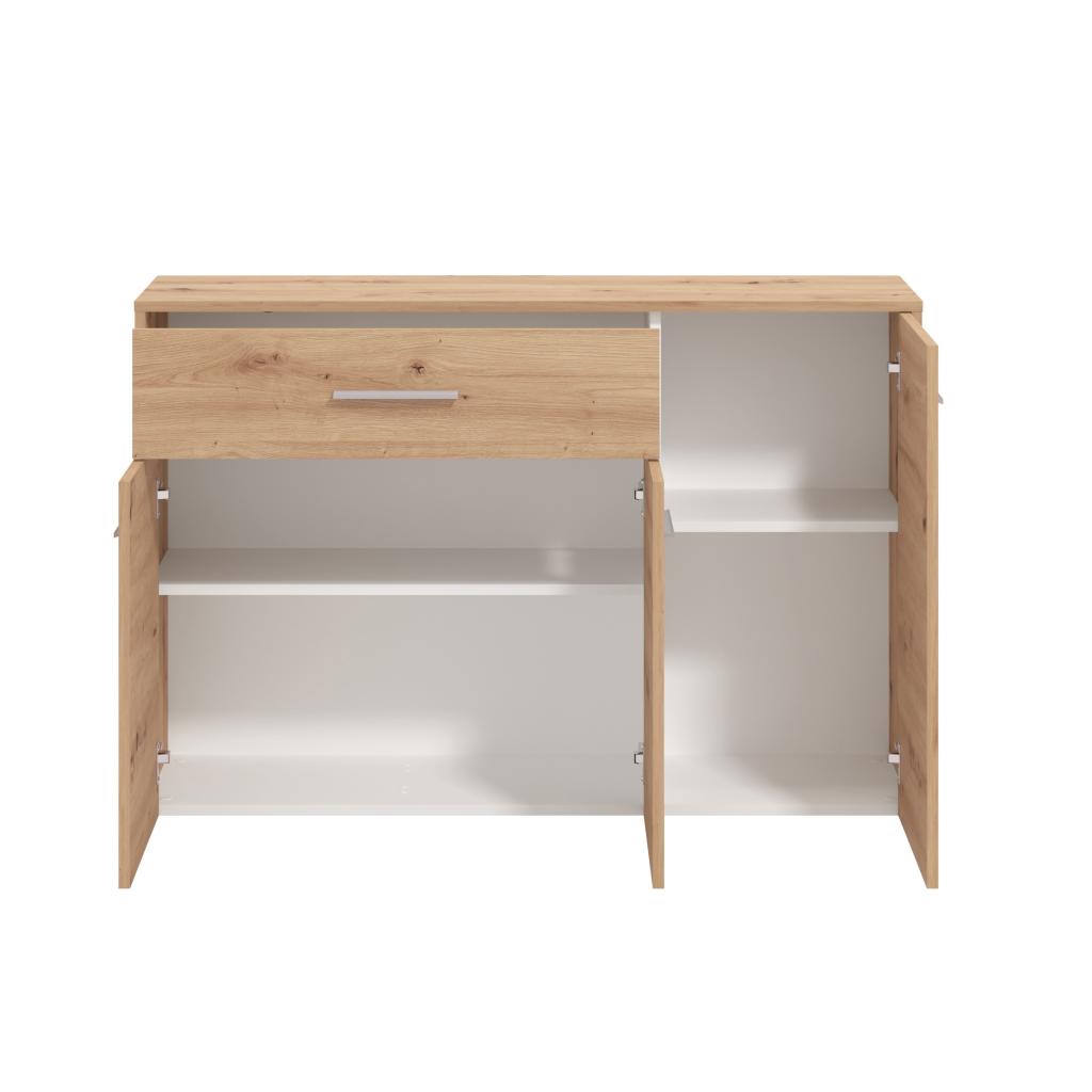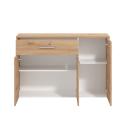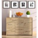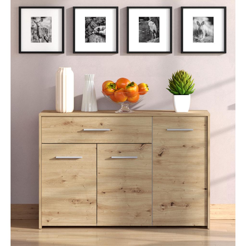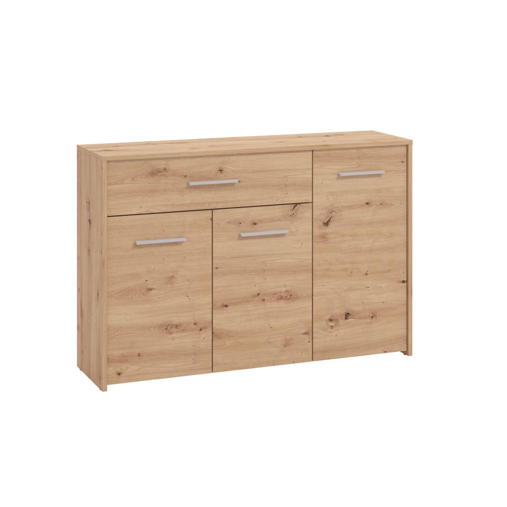 Rebajas Oferta Novedad Aparador en roble Ref: 212500000177 109,99 € El aparado de 3 puertas y 1 cajón tiene gran capacidad de almacenaje y te permitirá tener tu salón en ordenComposición: Tablero de partículas, tablero de fibras, lámina de papel, borde de plástico. Disponibilidad: Color Roble Tamaño 119x80.5x33 cm Ancho x Alto x Fondo Cantidad