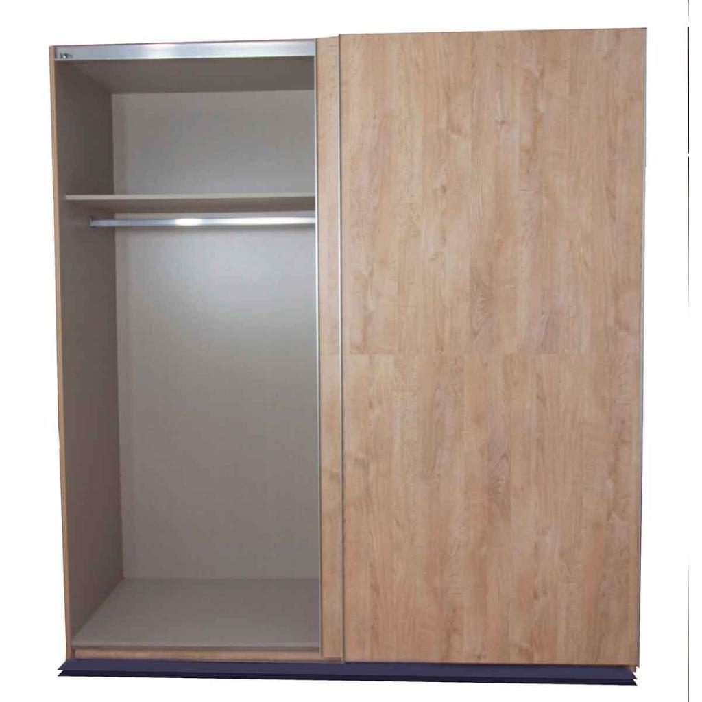 Armario de 2 puertas correderas de 200 cm. de ancho. Diseño moderno y funcional con herrajes metálicos acabado en blanco. Interiores en blanco. Incluye 2 barras y 2 estantes altillo. Compatible con cajonera 184100000407, opcional.