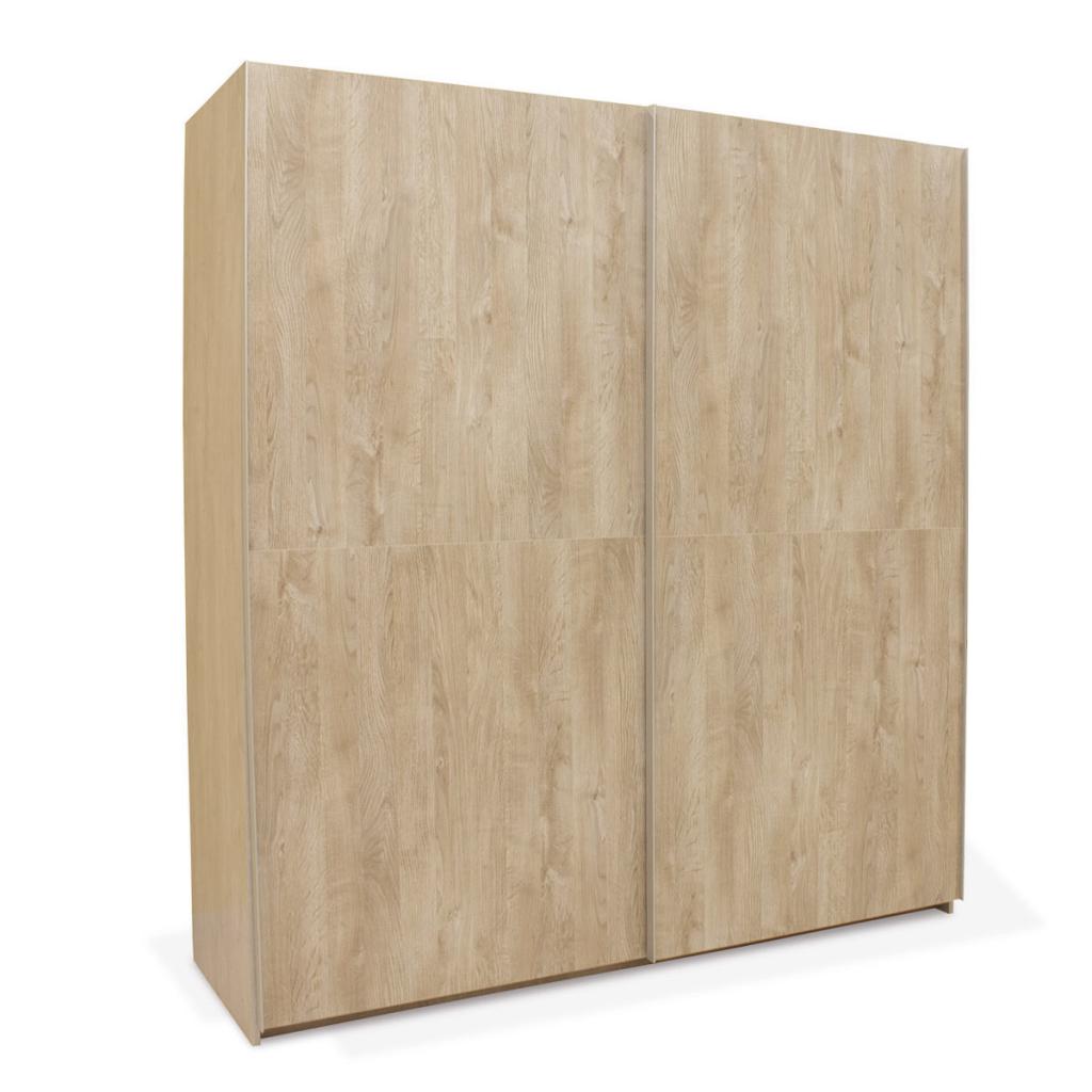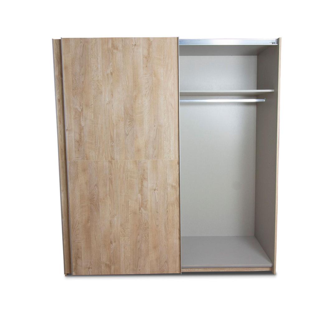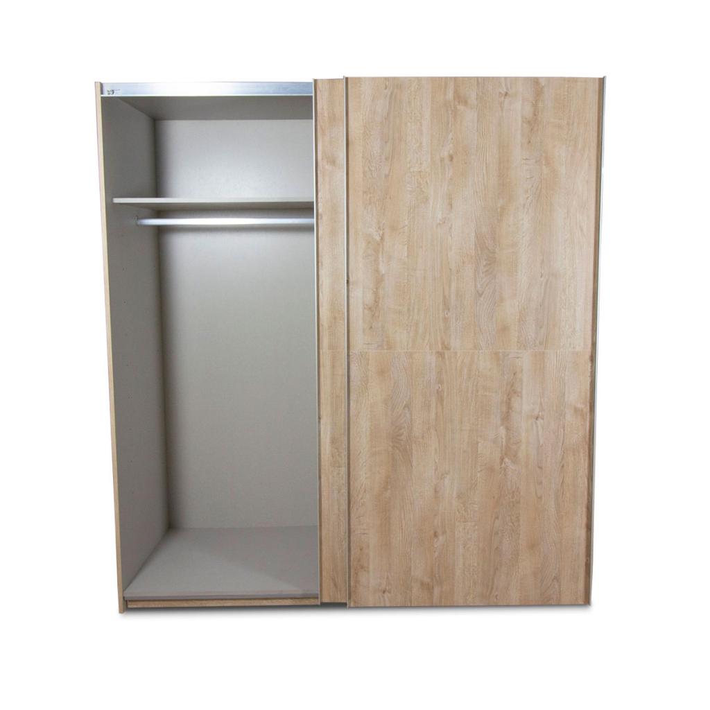 Armario de 2 puertas correderas, en color roble bodega de 180 cm. de ancho. Interiores en acabado textil. Incluye 2 barras y 2 estantes altillo. Cajonera compatible 184100000404 opcional.