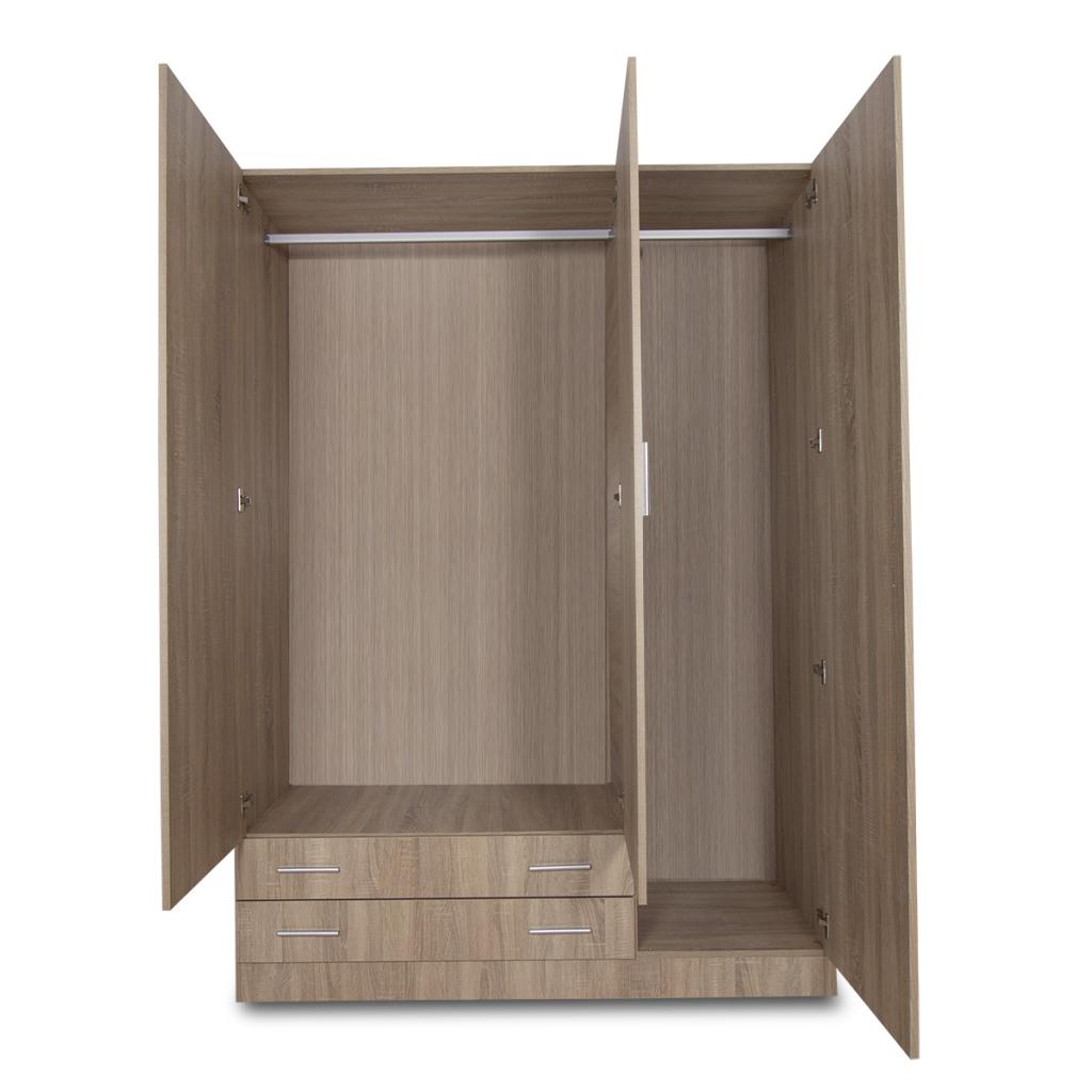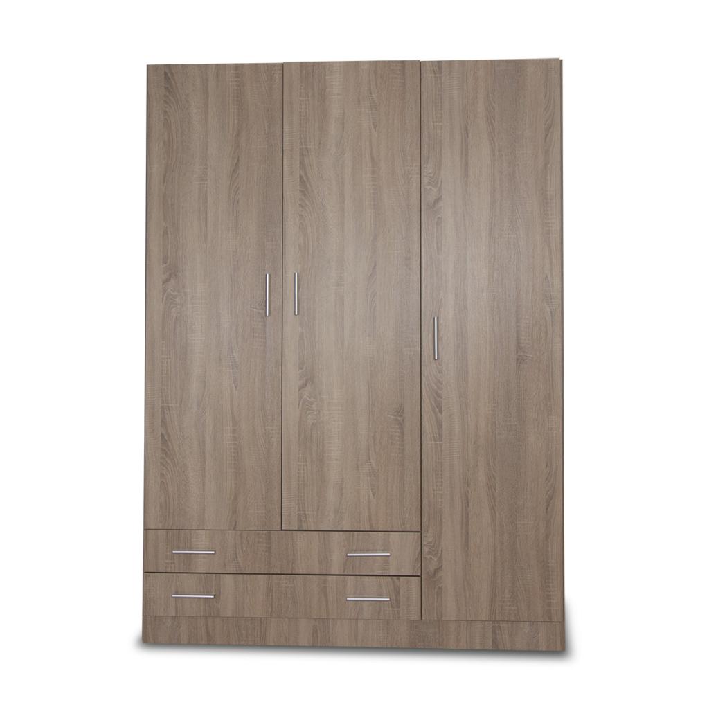 Rebajas Oferta Novedad Armario con 3 puertas y 2 cajones en roble cambrian Ref: 188700000031 249,99 € Armario de lineas rectas, compuesto por 3 puertas y 2 cajones, en color roble cambrian. Incluye 2 barras.Composición: Tablero de partículas, tablero de fibras, lámina de papel, borde de plástico. Disponibilidad: Color Roble cambrian Tamaño 150x210x52 Cms. Ancho x Alto x Fondo Cantidad