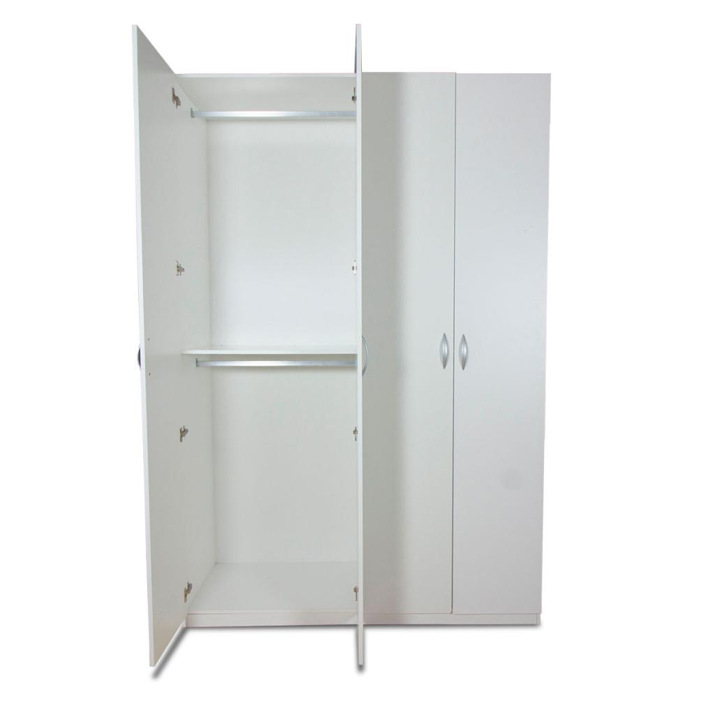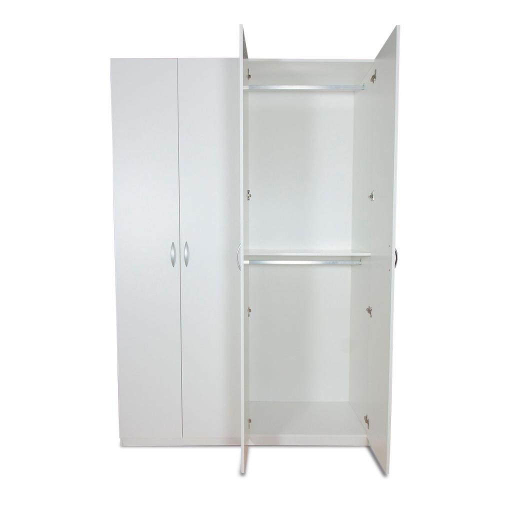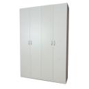 Armario de 4 puertas abatibles gran capacidad, con un acabado en color blanco de 160 cm. de ancho. Interiores acabados en blanco. Incluye 4 barras y 2 estantes. Cajonera compatible, 015400000378. (Opcional).