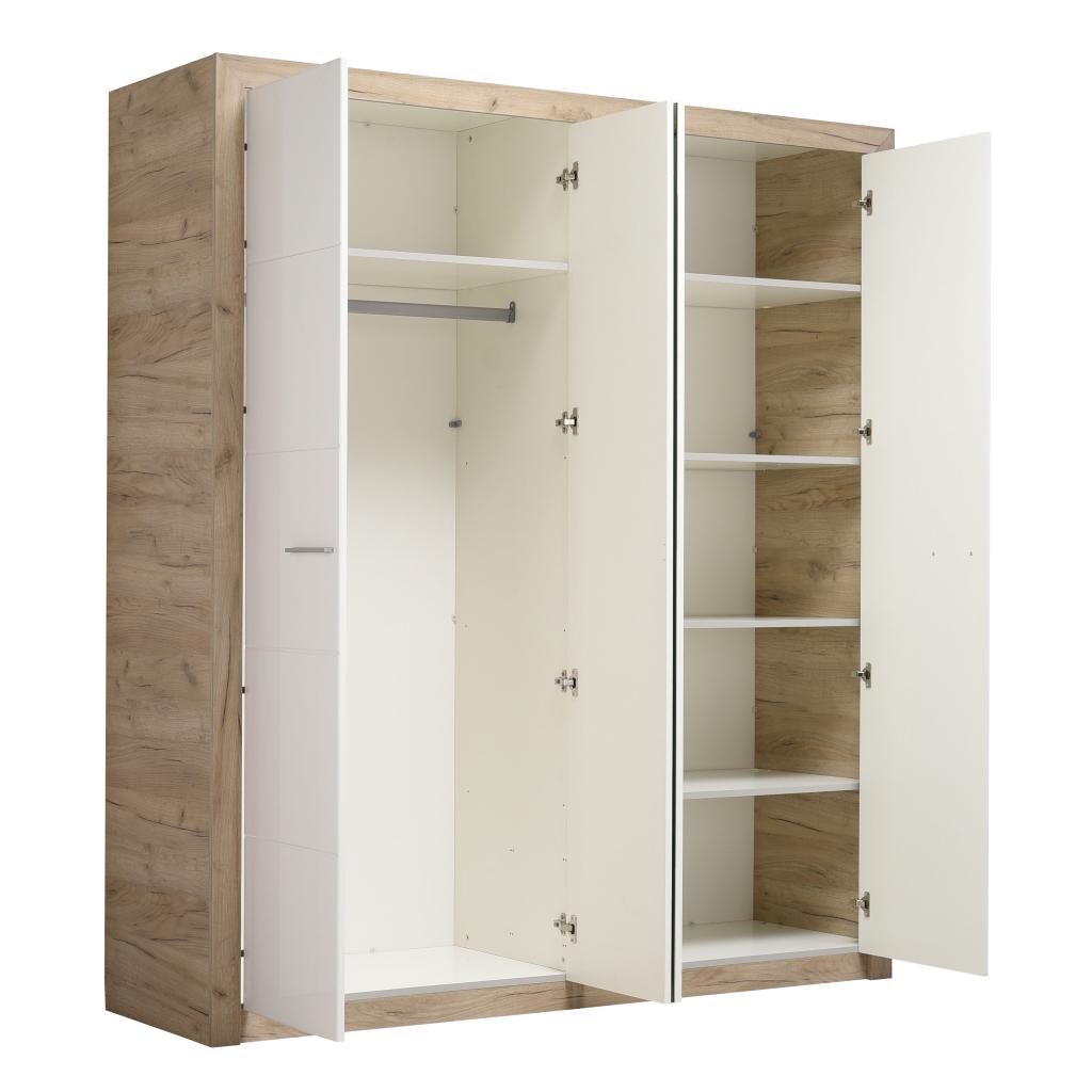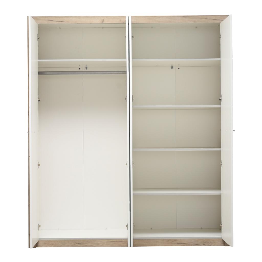 Rebajas Oferta Novedad Armario de 4 puertas con doble espejo en roble y blanco Ref: 212500000060 459,99 € Este modelo de 4 puertas dispone de gran capacidad de almacenaje. Cuenta con dos espejos en la parte centralComposición: Tablero de partículas, tablero de fibras, lámina de papel, borde de plástico, vidrio templado. Disponibilidad: Color Roble y blanco Tamaño 180x204x56 cm Ancho x Alto x Fondo Cantidad