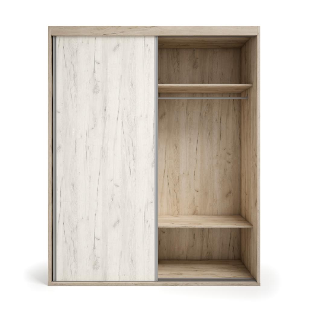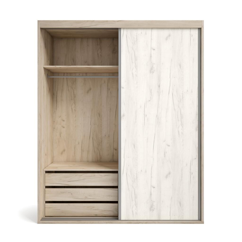 Rebajas Oferta Novedad Armario en Nordik Ref: 098801000576 499,99 € Armario de 2 puertas correderas de 180 cm. de ancho. Interiores en roble nordik. Incluye 2 barras, 2 estantes altillo y cajonera..Composición: Tablero de partículas, tablero de fibras, lámina de papel, borde de plástico. Disponibilidad: Color Nordik Tamaño 180x220x60 cm Ancho x Alto x Fondo Cantidad