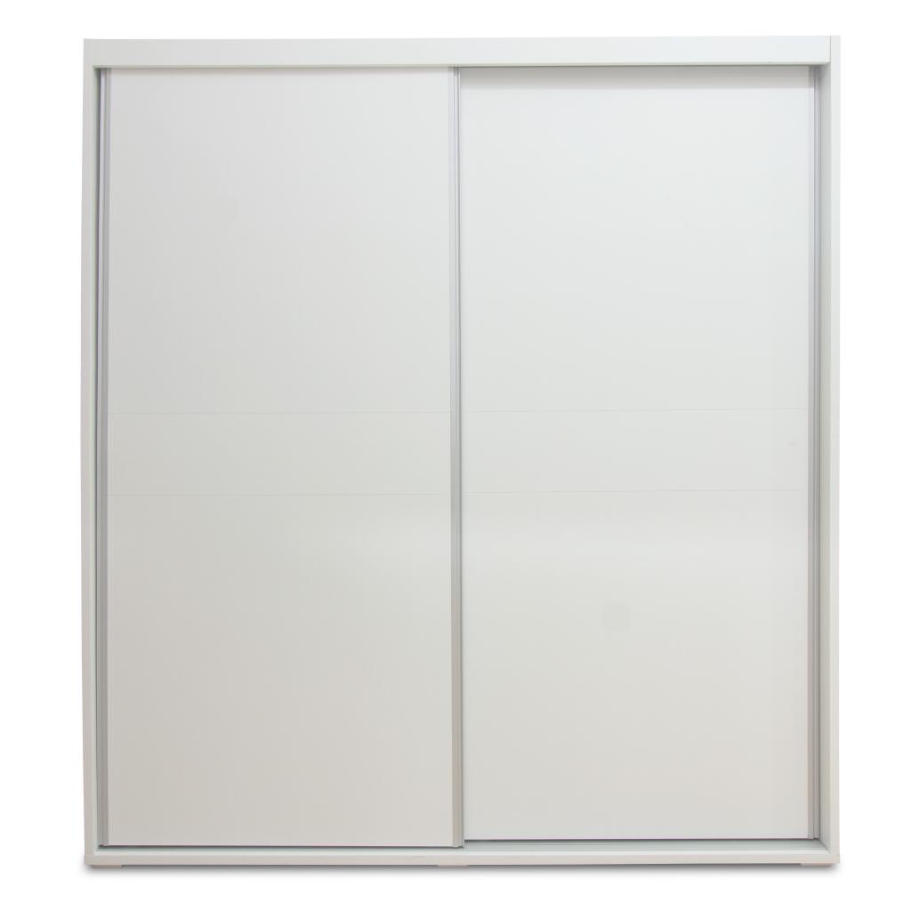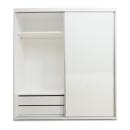 Armario de 2 puertas correderas con cajonera incluida. Cuenta con un diseño moderno y funcional. Acabado en blanco poro. Incluye 2 barras, 3 estantes + cajonera.