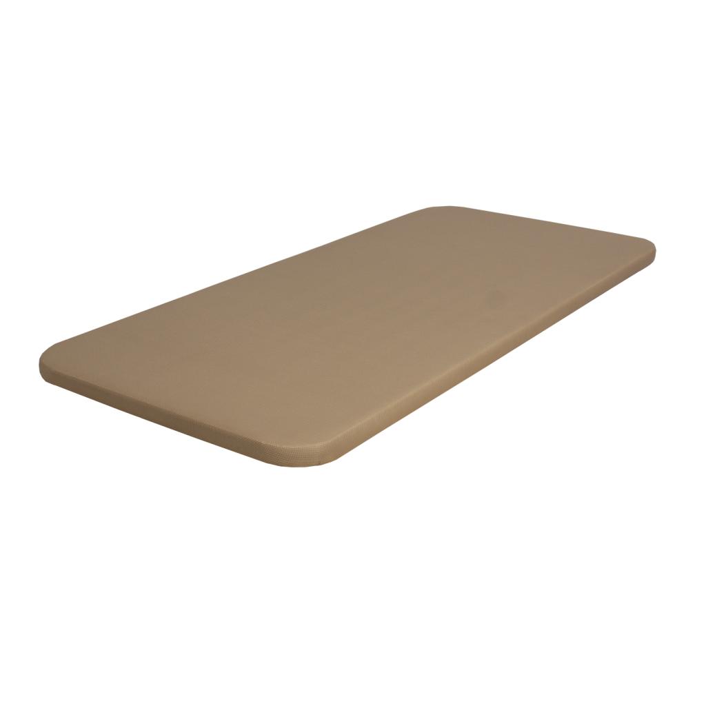 Base tapizada en tejido 3D color beige, que asegura la transpirabilidad y circulación del aire. Estructura construida en hierro, reforzada para evitar dobleces con inserciones a rosca para acoplar las patas. Preparada para 4 patas en medidas individuales y para 6 patas en medidas matrimoniales. Tablero de partículas compactado de gran resistencia con perforaciones circulares para permitir la transpirabilidad del colchón. No incluye patas