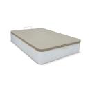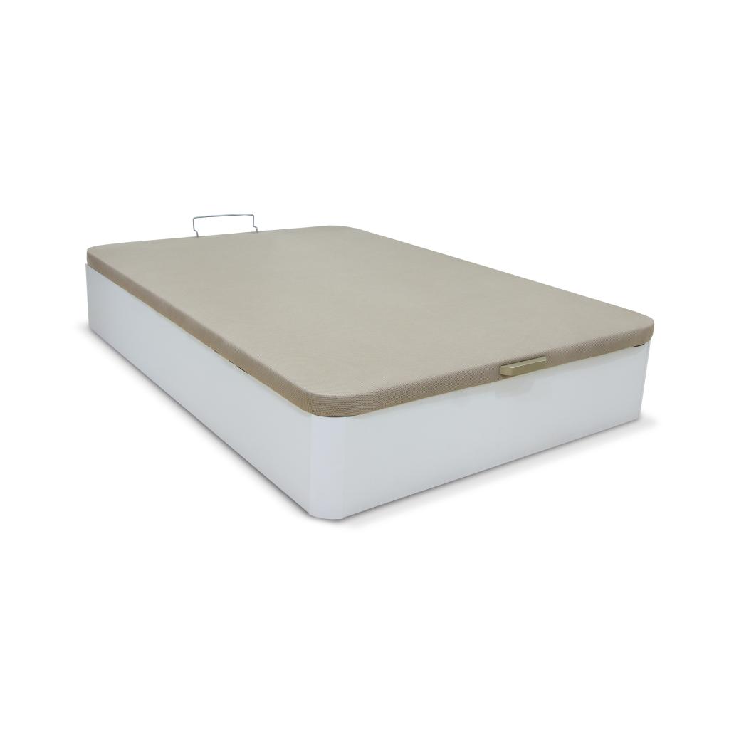 Canapé acabado en blanco con esquinas redondeadas de gran capacidad acabado en madera con base tapizada de altura total 35 cm.Base tapizada en tejido 3D color beige que asegura la transpirabilidad y circulación del aire. Reforzada de gran resistencia, con tirador embutido Tablero de partículas compactado con perforaciones circulares para permitir la transpirabilidad del colchón.Cajón con patas de madera de gran capacidad acabado madera de color roble de 29 cm de altura.Disponible en apertura lateral.