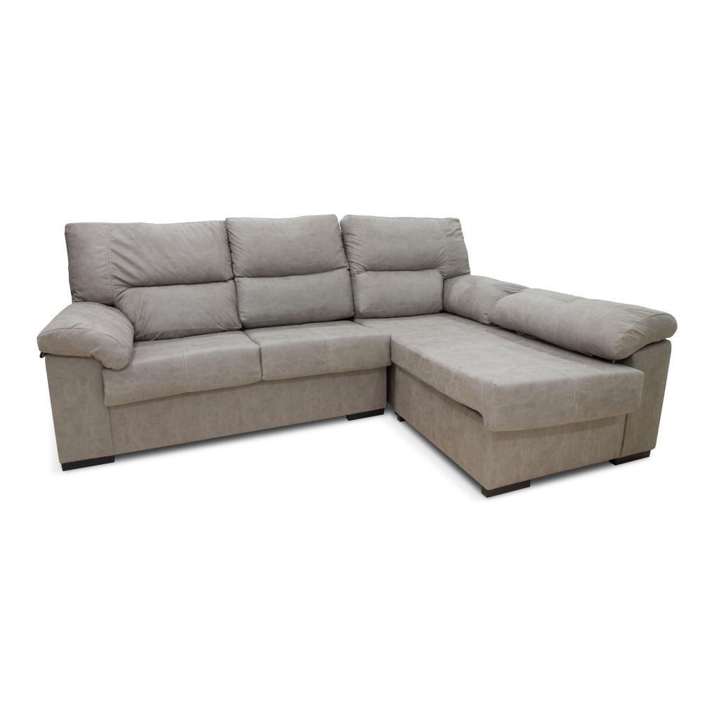 Sofá de 3 plazas con chaiselongue reversible en color cemento. Amplio sofá para disfrutar con toda la familia. (Situación del chaiselongue mirando de frente).