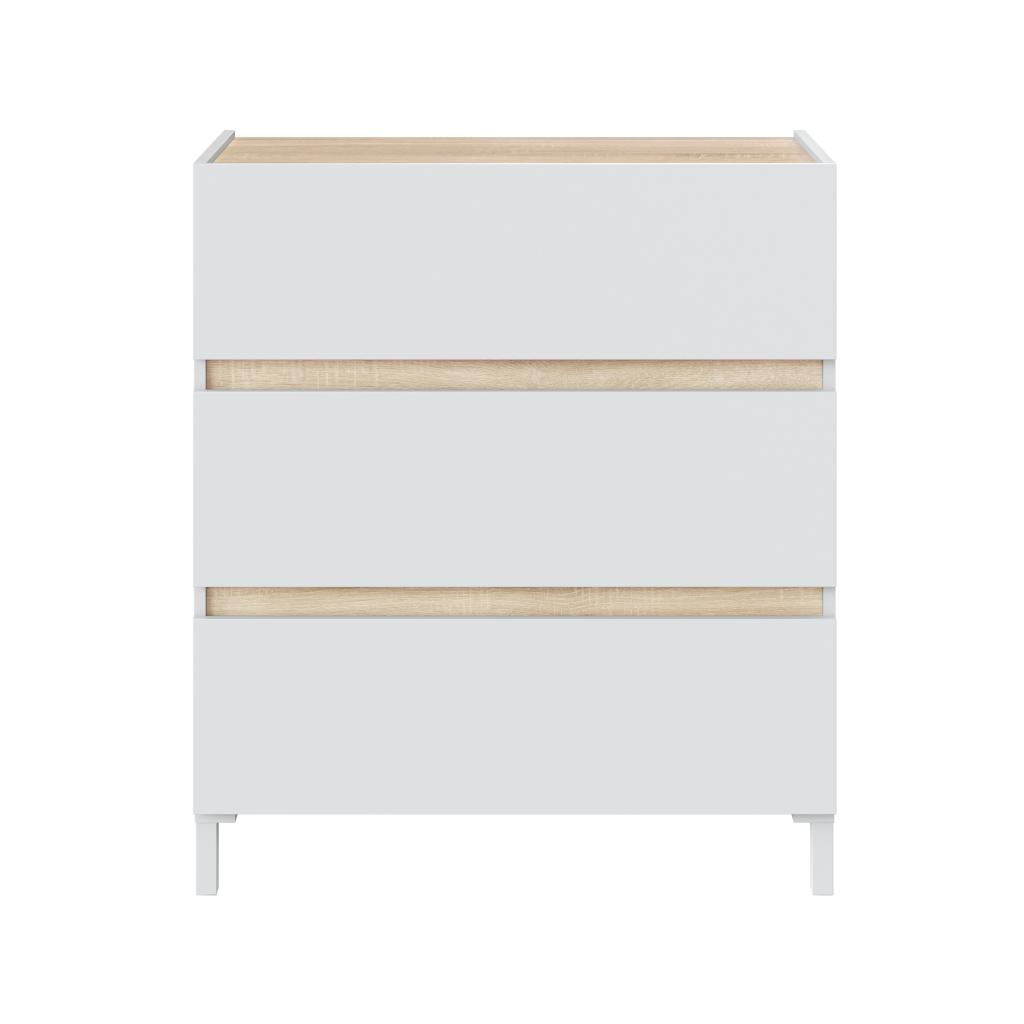 La cómoda cuenta con tres espaciosos cajones extraíbles, es una opción ideal para guardar ropa doblada, accesorios o cualquier otro objeto que necesites tener a mano en tu dormitorio.