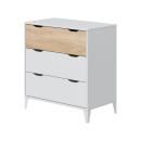 Rebajas Oferta Novedad Cómoda Ref: 015400000532 96,99 € Cómoda con tres cajones y con patas.Composición: Tablero de partículas, tablero de fibras, lámina de papel, borde de plástico. Disponibilidad: Color Blanco Artik / Roble Canadian Tamaño 70.5x76x40 cm Ancho x Alto x Fondo Cantidad