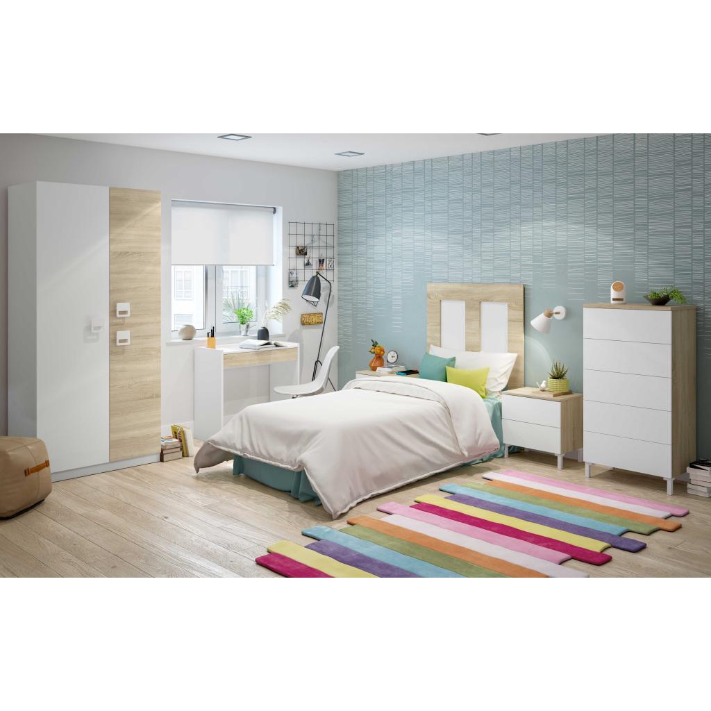 Ahora puede formar el dormitorio de sus hijos a su gusto y según las necesidades. Puede combinarlo con cabecero de 90/105 cm, armario, sinfonier, mesita, escritorio. En color roble y blanco.