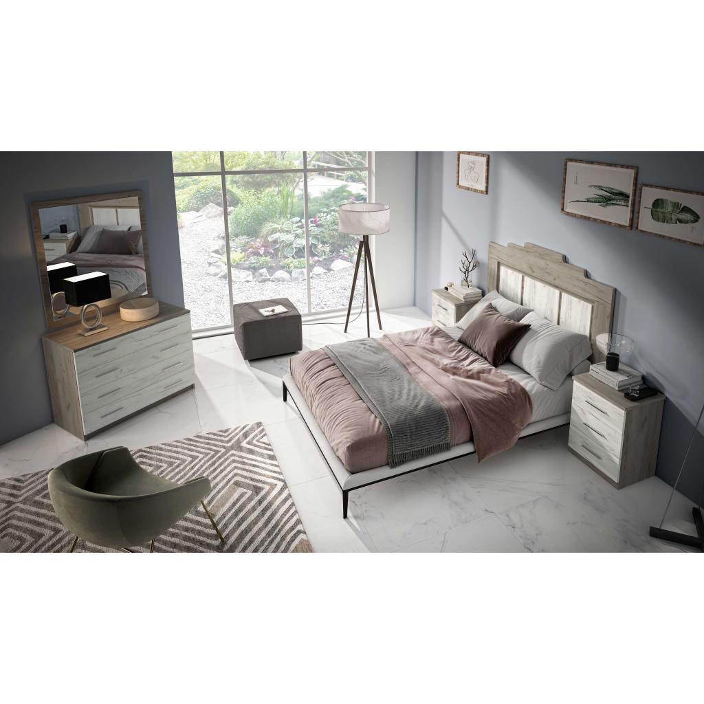 Rebajas Oferta Novedad Dormitorio de matrimonio Ref: 175500002452 479,99 € Dormitorio de matrimonio diseño de última tendencia, en color roble y nordik, compuesto por cabecero, 2 mesitas, cómoda y espejo. Composición: Tablero de partículas, tablero de fibras, lámina de papel, borde de plástico, vidrio templado. Disponibilidad: Color roble y nordik Tamaño Mesita 50x56x30 Cabecero 160x137x2 Cómoda 100x76x45 Espejo 90x100 Ancho x Alto x Fondo Cantidad