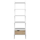 Rebajas Oferta Novedad Estantería escalera Ref: 139900000072 119,99 € Original estantería en forma de escalera y con cajón en la zona inferior. En color blanco y roble.Composición: Tablero de partículas, tablero de fibras, lámina de papel, borde de plástico. Disponibilidad: Color Blanco-Roble cambrian Tamaño 180,4 x 55,1 x 48,1 Cms. Alto x Ancho x Fondo Cantidad