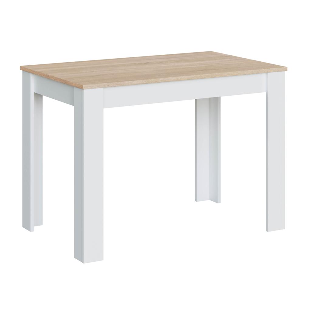 Mesa de estilo nórdico, disponible en blanco artik y roble canadian. Esta elaborada en melamina de alta calidad. Muy resistente al uso diario, es muy fácil de limpiar.