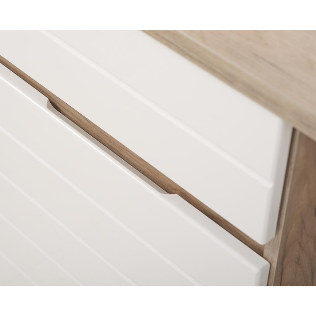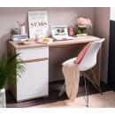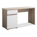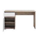 Rebajas Oferta Novedad Mesa de escritorio en blanco brillo y roble Ref: 212500000036 124,99 € Mesa de estudio con patas, formada por un cajón y una puerta. Fabricada en melamina en color roble y los frentes en blanco brilloComposición: Tablero de partículas, tablero de fibras, lámina de papel, borde de plástico. Disponibilidad: Color Blanco brillo y roble Tamaño 130x75x50 cm. Ancho x Alto x Fondo Cantidad