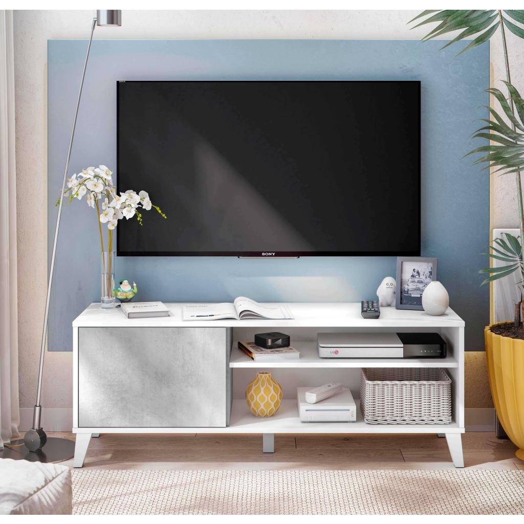 Rebajas Oferta Novedad Mesa Tv Ref: 015400000533 79,99 € Mueble TV con un estante y una puerta. Composición: Tablero de partículas, tablero de fibras, lámina de papel, borde de plástico. Disponibilidad: Color Blanco/ Cemento Tamaño 135x50x40 cm Ancho x Alto x Fondo Cantidad