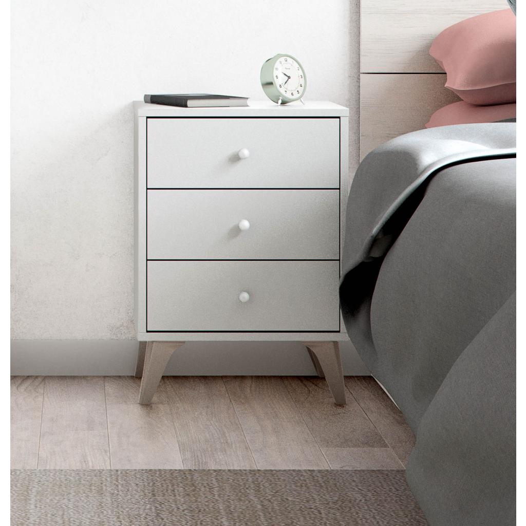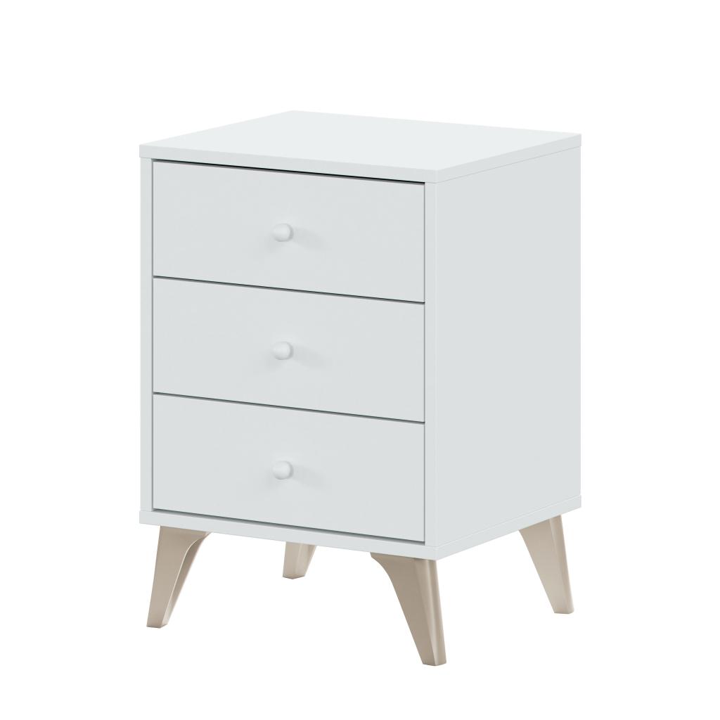Rebajas Oferta Novedad Mesita en blanco Ref: 015400000503 52,99 € Dispone de 3 cajones y patas con un diseño ligeramente inclinado que le aportan un toque original al diseñoComposición: Tablero de partículas, tablero de fibras, lámina de papel, borde de plástico. Disponibilidad: Color Blanco Tamaño 40x56x33 cm Ancho x Alto x Fondo Cantidad