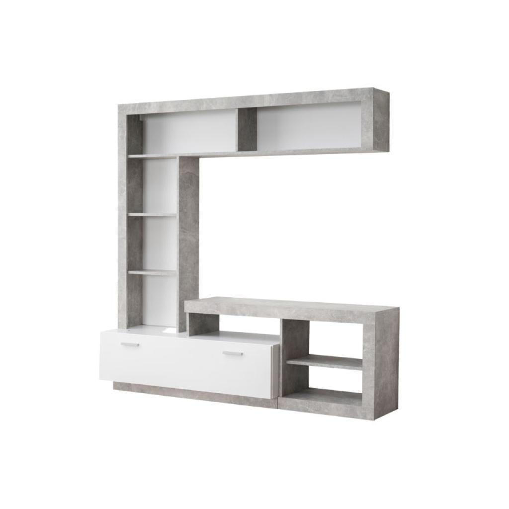 Moderno apilable de salón, destaca por su diseño y combinación de colores. La sección cerrada, mesa TV ubicado en el centro y estantes abiertos forman una unidad compacta para almacenar todos los artículos y equipos audiovisuales.