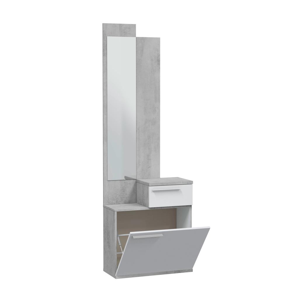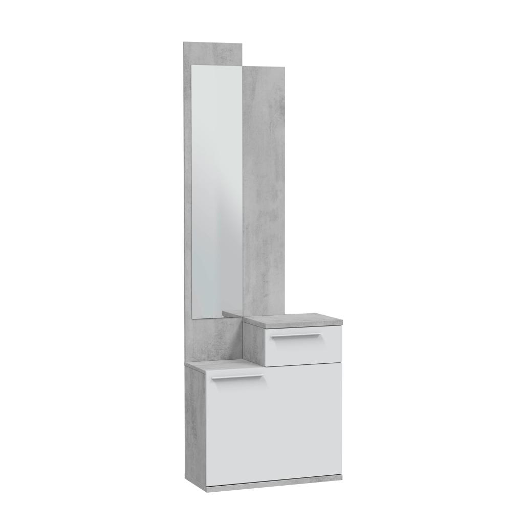 Este recibidor es un mueble muy funcional ya que en la parte inferior incluye un zapatero. Tambiñen dispone de un cajón para guardar las llaves, el monedero . Y por último, un espejo para darte un retoque antes de salir de casa.