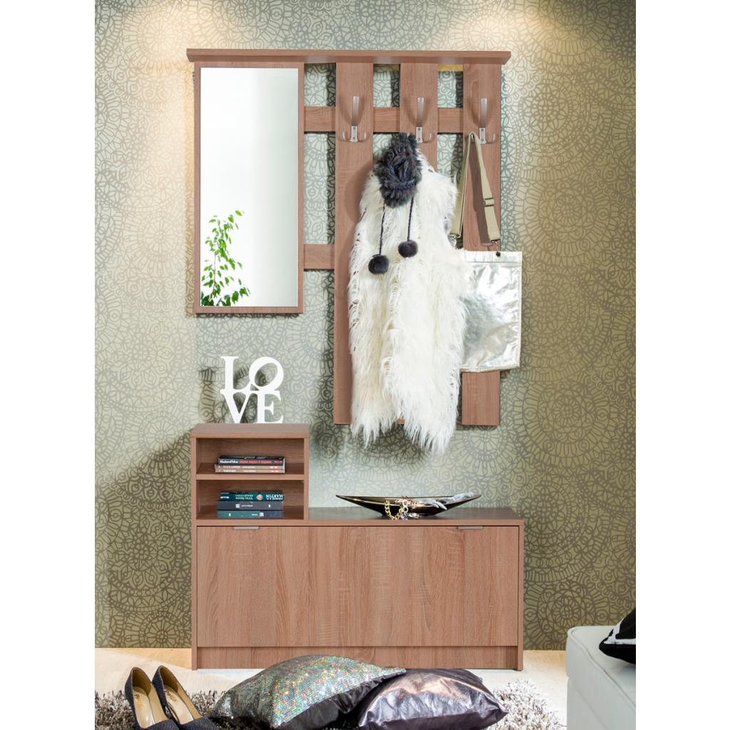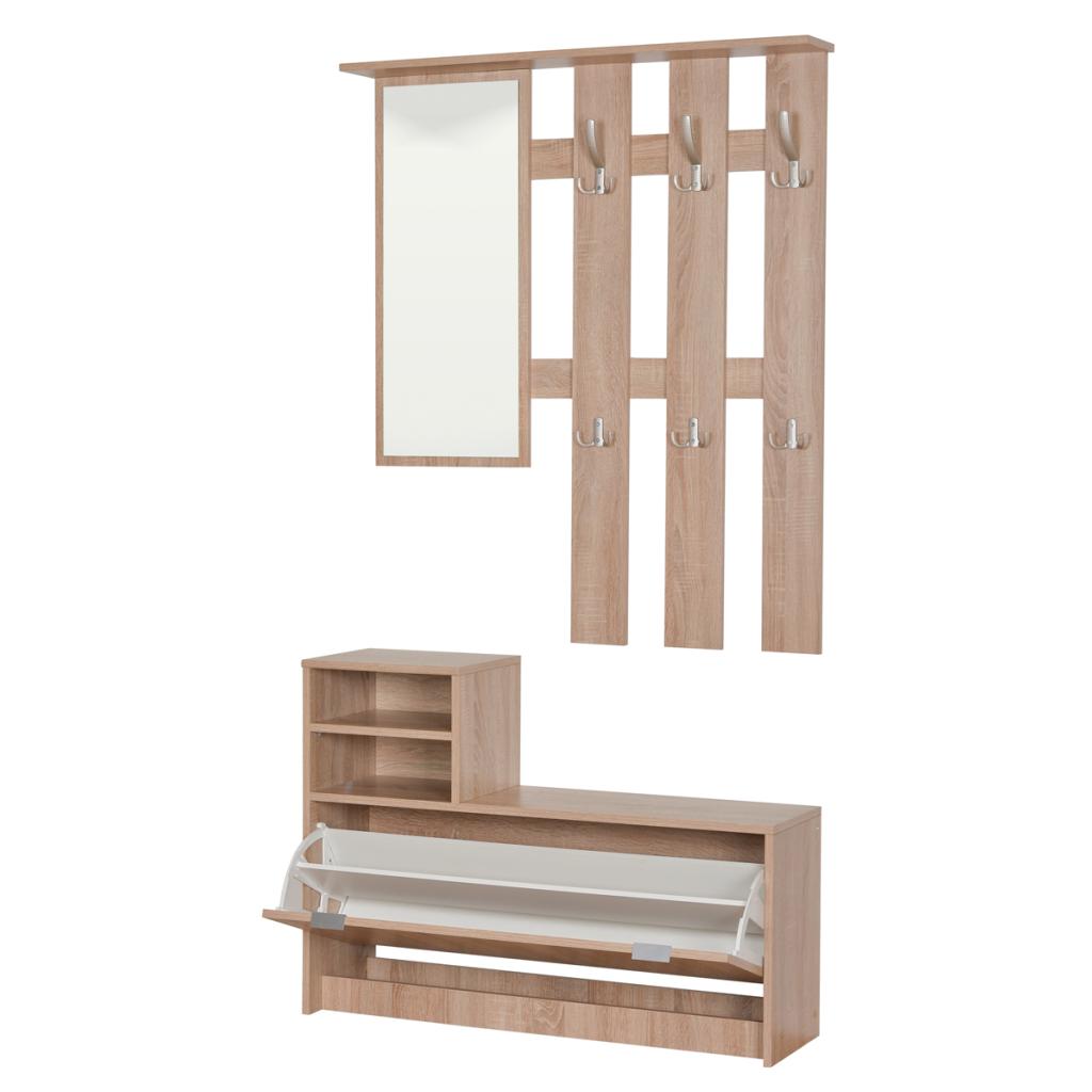 Este recibidor es un mueble muy funcional ya que en la parte inferior incluye un zapatero con capacidad para 8 pares.También dispone de dos huecos para guardar las llaves, el monedero... Además incorpora seis percheros para dejar chaquetas y abrigos. Y un espejo para darte el último retoque antes de salir de casa.