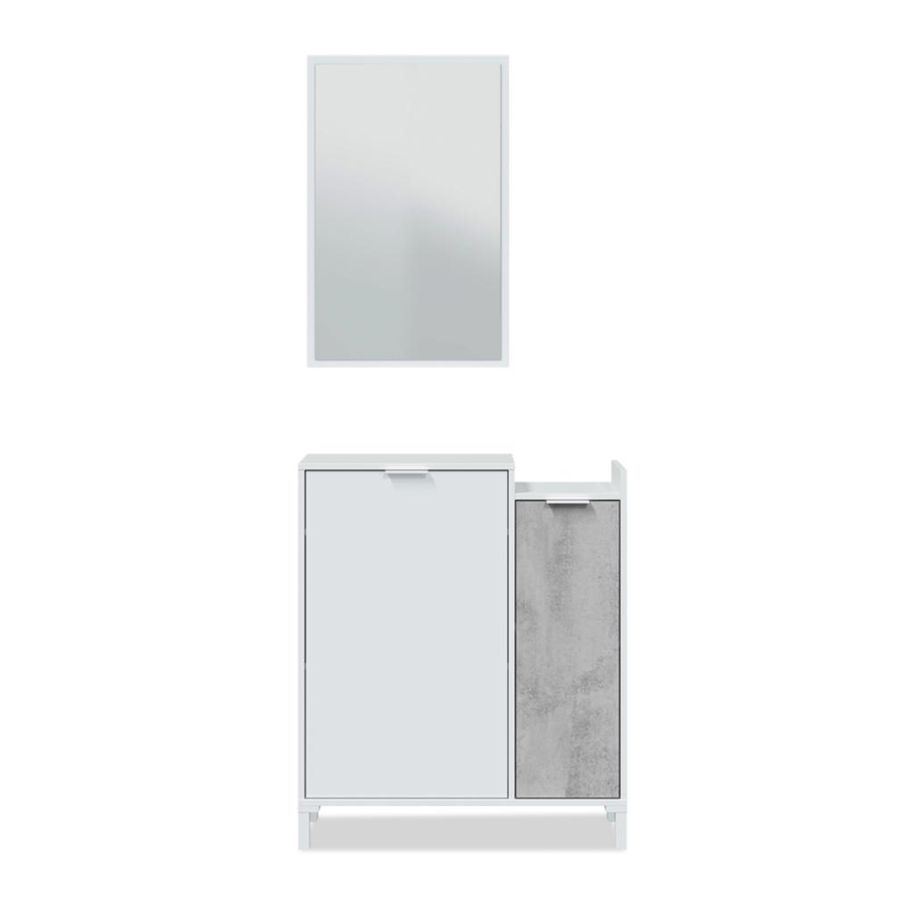 Rebajas Oferta Novedad Recibidor Ethana Ref: 015400000534 79,99 € Recibidor 2 puertas con estantes para almacenamiento, con patas y espejo. Composición: Tablero de partículas, tablero de fibras, lámina de papel, borde de plástico, vidrio templado. Disponibilidad: Color Blanco Artik/Cemento Tamaño Mueble 77x91x24 cm Espejo 50x77x1,8 cm Ancho x Alto x Fondo Cantidad