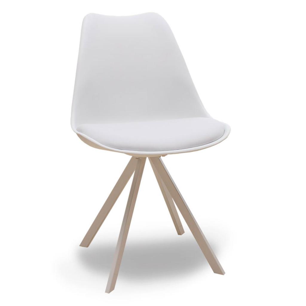 Rebajas Oferta Novedad Silla estilo nórdico en blanco Ref: 192800000008 39,99 € Cuenta con un cojín en el asiento. Está formada por cuatro sencillas patas metálicas de color blanco. Gracias a ello, su sujección será mayor.Composición: Plástico de polipropileno, pino macizo. Disponibilidad: Color Blanco Tamaño 45x83x46 cm. Ancho x Alto x Fondo Cantidad