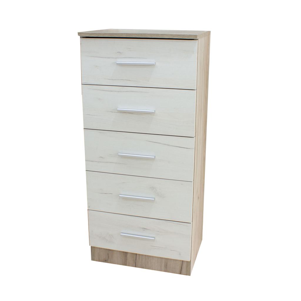 Rebajas Oferta Novedad Sinfonier Ref: 188700000079 104,99 € Sinfonier de 5 cajones en color nordik y roble. Tiradores en color aluminio.Composición: Tablero de partículas, tablero de fibras, lámina de papel, borde de plástico. Disponibilidad: Color Roble / Nordik Tamaño Sinfonier 46x103x35 cm Ancho x Alto x Fondo Cantidad