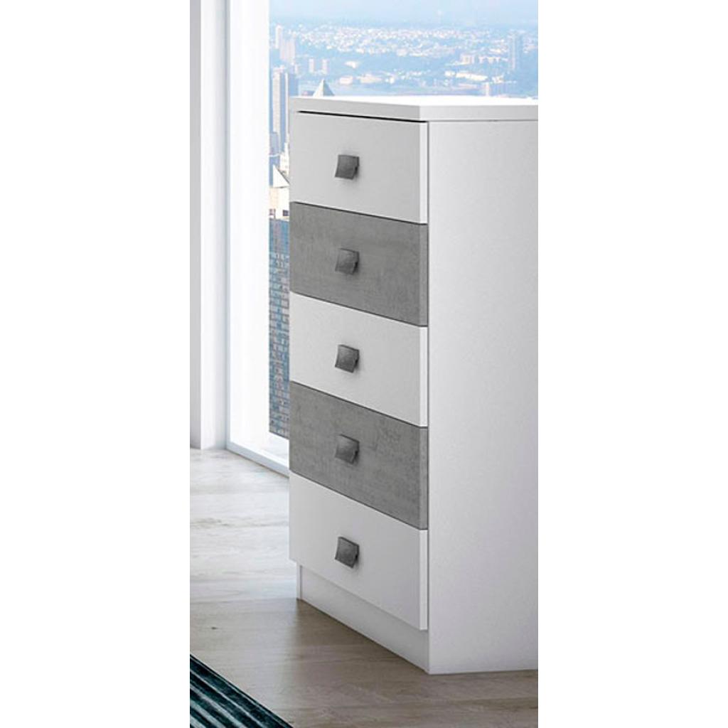 Rebajas Oferta Novedad Sinfonier en blanco poro y pozzolana Ref: 175500002158 179,99 € Sinfonier juvenil en color blanco poro y pozzolana, cuenta con 5 cajones.Composición: Tablero de partículas, tablero de fibras, lámina de papel, borde de plástico. Disponibilidad: Color Blanco poro y pozzolana Tamaño Sinfonier. 58x110x36 cm. Ancho x Alto x Fondo. Cantidad
