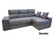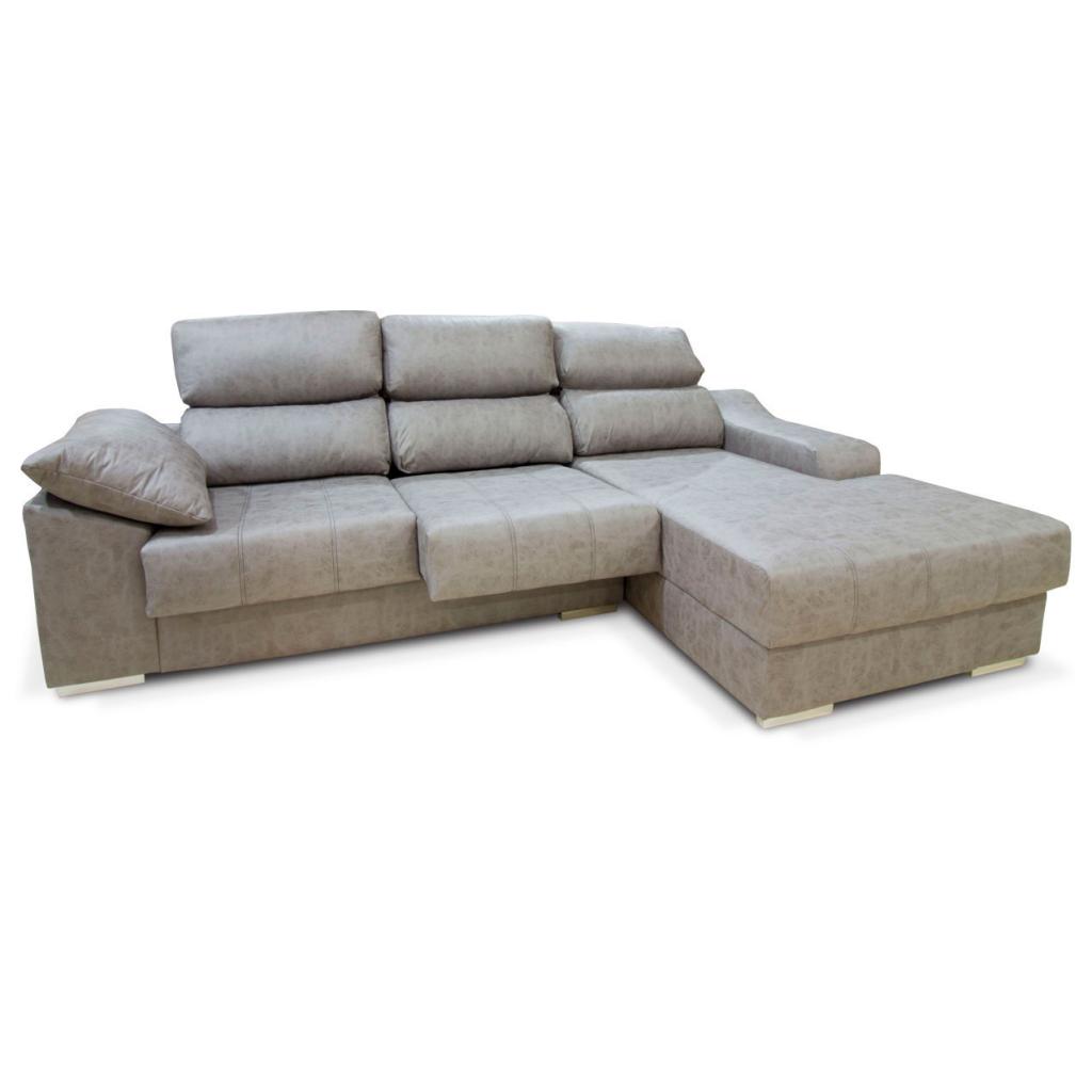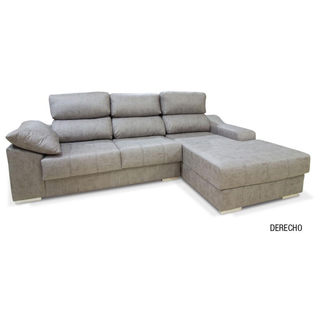 Sofá de 3 plazas con chaiselongue derecha o izquierda de gran confort. Moderno diseño con dobles costuras decorativas en tono gris. Resistente al uso diario.Dispone de asientos extraibles, cabezal abatible, 1 puf y arcón. (Situación del módulo chaiselongue mirando de frente).