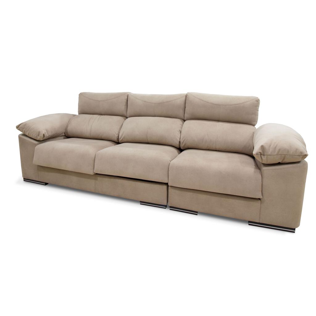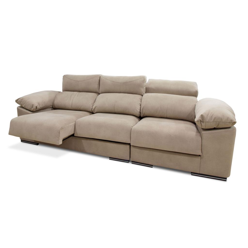 Sofá de 4 plazas de elegante diseño de gran confort y resistencia. Con cabezales reclinables y asientos extraibles. Incluye 2 pouffs.