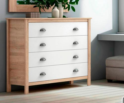 Ver detalles Cómoda con 4 cajones en color blanco poro y roble cambrian 199,99 € Color Blanco poro y roble cambrian Tamaño 105x96x50 cm. Ancho x Alto x Fondo Cantidad Ver detalles