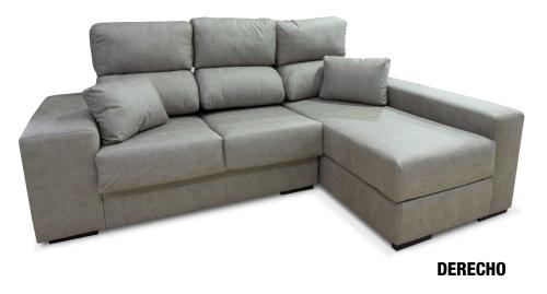 Sofá 3 plazas con chaiselongue en gris + arcón