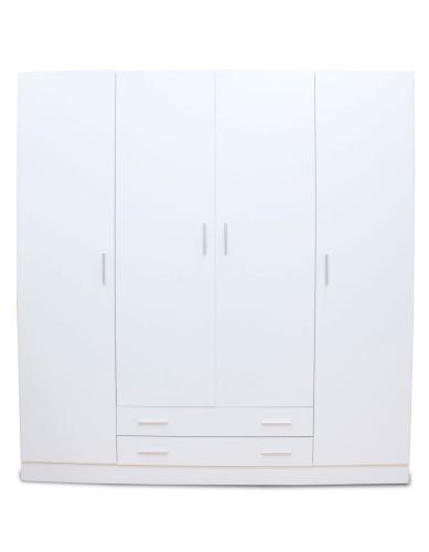Ver detalles Armario de 4 puertas y 2 cajones en color blanco 289,99 € Color Blanco Tamaño 200x210x52 cms Ancho x Alto x Fondo Cantidad Ver detalles