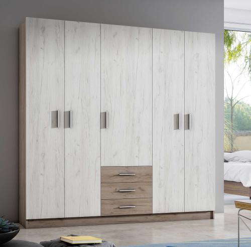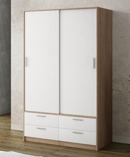 Ver detalles Armario 2 puertas + 4 cajones en blanco y roble cambrian 299,99 € Color Blanco y roble cambrian Tamaño 121,2x200x60,25 cm Ancho x Alto x Fondo Cantidad Ver detalles