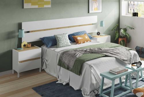 Ver detalles Cabecero de matrimonio con 2 mesitas 194,99 € Color Blanco artik y roble canadian Tamaño Cabecero 160x77x3 cm Mesitas 50x53x35 cm Ancho x Alto x Fondo Cantidad Ver detalles