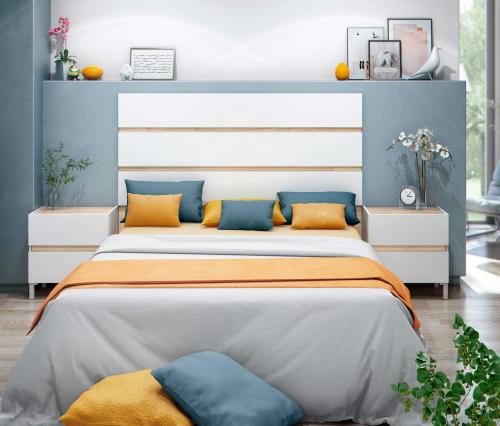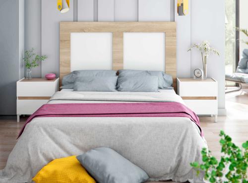Ver detalles Cabecero de matrimonio con 2 mesitas 194,99 € Color Blanco Artik / Blanco Canadian Tamaño Cabecero 160x132x3 cm Mesitas 44x50x33 cm Ancho x Alto x Fondo Cantidad Ver detalles