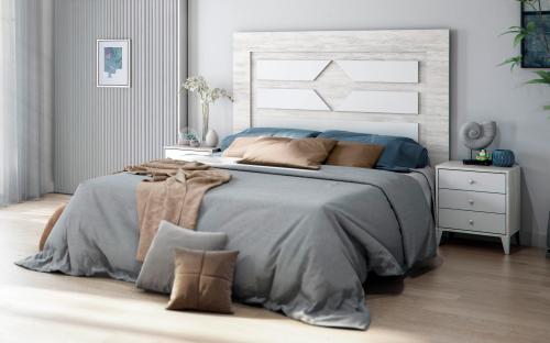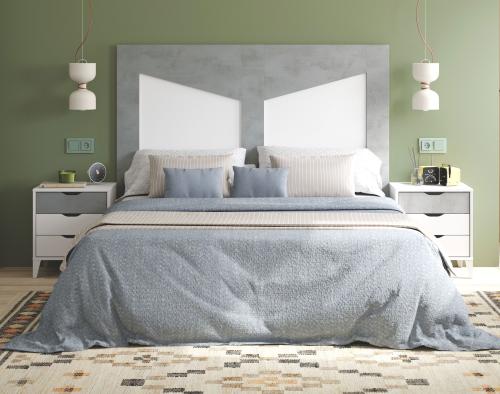 Ver detalles Dormitorio de matrimonio 194,99 € Color Blanco / Cemento Tamaño Cabecero 160x132x3 cm Mesitas 44x50x33 cm Ancho x Alto x Fondo Cantidad Ver detalles