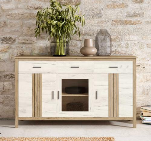 Ver detalles Elegante aparador en blanco poro 349,99 € Color Blanco poro Tamaño Aparador. 170x95.5x40 cm. Ancho x Alto x Fondo. Cantidad Ver detalles