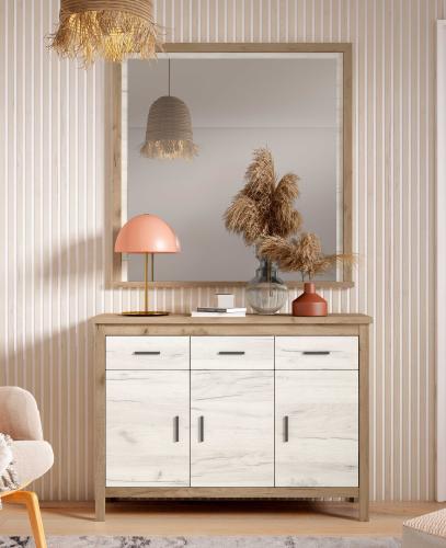 Ver detalles Consola con espejo en nordik 299,99 € Color Nordik Tamaño 117x85.5x34 Espejo 110x110 cm Ancho x Alto x Fondo Cantidad Ver detalles