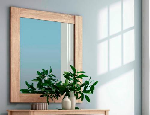 Ver detalles Espejo enmarcado en roble cambrian 69,99 € Color Blanco poro y roble cambrian Tamaño 92x105 cm. Ancho x Alto x Fondo Cantidad Ver detalles