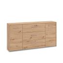 Rebajas Novedad Aparador Ref: 212500000178 139,99 € Sencillo aparador en roble con 3 cajones y 2 puertasComposición: Tablero de partículas, tablero de fibras, lámina de papel, borde de plástico. Disponibilidad: Color Roble Tamaño 158x80.5x33 cm Ancho x Alto x Fondo Cantidad