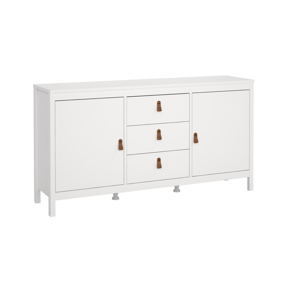 Rebajas Oferta Novedad Aparador en blanco Ref: 139900000183 229,99 € Sencillo aparador en blanco, dos puertas y tres cajones.Composición: Tablero de partículas, tablero de fibras, lámina de papel, borde de plástico. Disponibilidad: Color Blanco Tamaño 151.4x79.7x38.4 Ancho x Alto x Fondo Cantidad