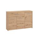 Rebajas Novedad Aparador en roble Ref: 212500000177 109,99 € El aparado de 3 puertas y 1 cajón tiene gran capacidad de almacenaje y te permitirá tener tu salón en ordenComposición: Tablero de partículas, tablero de fibras, lámina de papel, borde de plástico. Disponibilidad: Color Roble Tamaño 119x80.5x33 cm Ancho x Alto x Fondo Cantidad