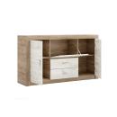 Rebajas Oferta Novedad Aparador en roble y blanco Ref: 098801000146 269,99 € Sencillo aparador en roble y blanco. Con 2 puertas, 2 cajones y vitrina.Composición: Tablero de partículas, tablero de fibras, lámina de papel, borde de plástico, vidrio templado Disponibilidad: Color Roble y blanco Tamaño 154x86x40 Ancho x Alto x Fondo Cantidad