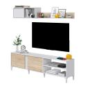 Conjunto para salón compuesto de un mueble bajo de televisión con 2 puertas y 2 huecos, un módulo con una puerta y us estante de colgar.