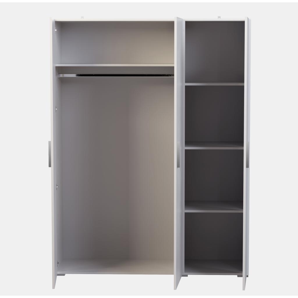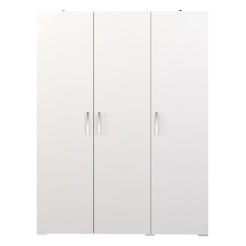 Rebajas Novedad Armario de 3 puertas Ref: 184100000585 159,99 € Elegante armario de 3 puertas en color blanco. Tiradores en color plata. Incluye en su interior 5 estantaes en total y una barra de colgar.Composición: Tablero de partículas, tablero de fibras, lámina de papel, borde de plástico. Disponibilidad: Color Blanco Tamaño 145x190x50 cm Ancho x Alto x Fondo Cantidad