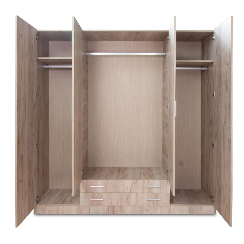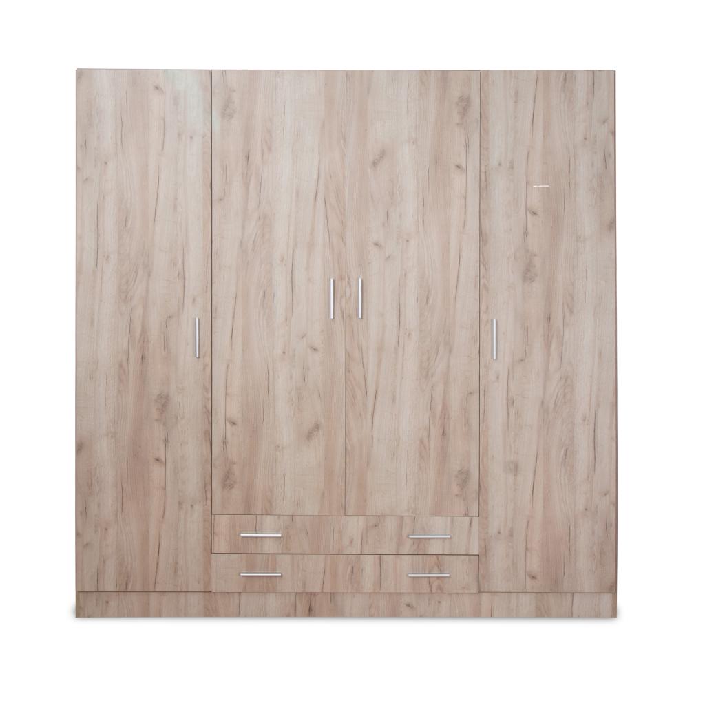 Rebajas Oferta Novedad Armario de 4 puertas y 2cajones en color roble grey Ref: 188700000080 299,99 € Elegante armario de 4 puertas y 2 cajones en color roble grey. Incluye tres barras y dos estantes en la parte superior.Composición: Tablero de partículas, tablero de fibras, lámina de papel, borde de plástico. Disponibilidad: Color Roble Grey Tamaño 200x210x52Cms Ancho x Alto x Fondo Cantidad