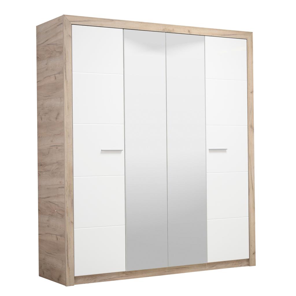 Rebajas Oferta Novedad Armario de 4 puertas con doble espejo en roble y blanco Ref: 212500000060 459,99 € Este modelo de 4 puertas dispone de gran capacidad de almacenaje. Cuenta con dos espejos en la parte centralComposición: Tablero de partículas, tablero de fibras, lámina de papel, borde de plástico, vidrio templado. Disponibilidad: Color Roble y blanco Tamaño 180x204x56 cm Ancho x Alto x Fondo Cantidad